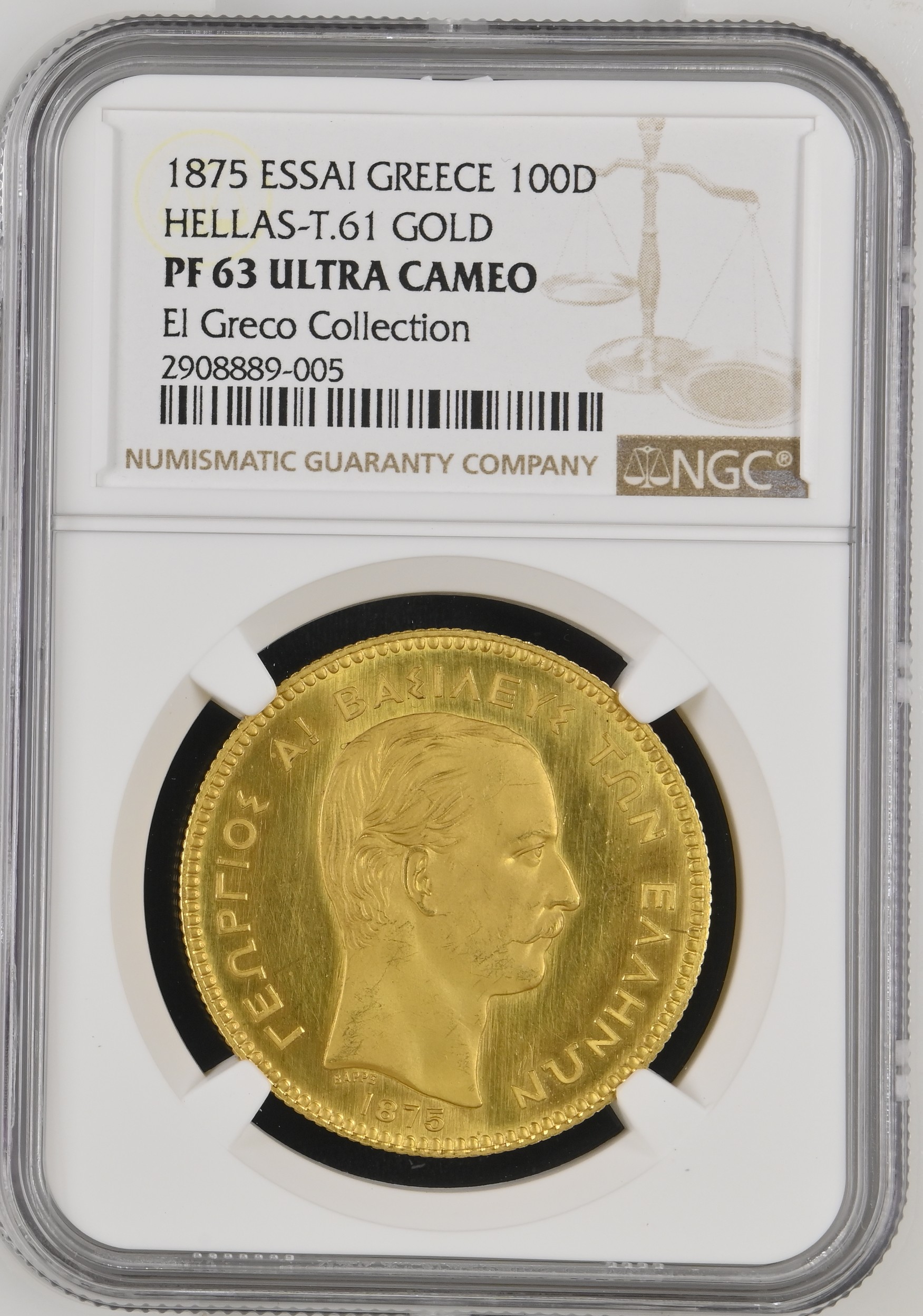 - 1875 ESSAI GREECE HELLAS-T.61 GOLD 100D