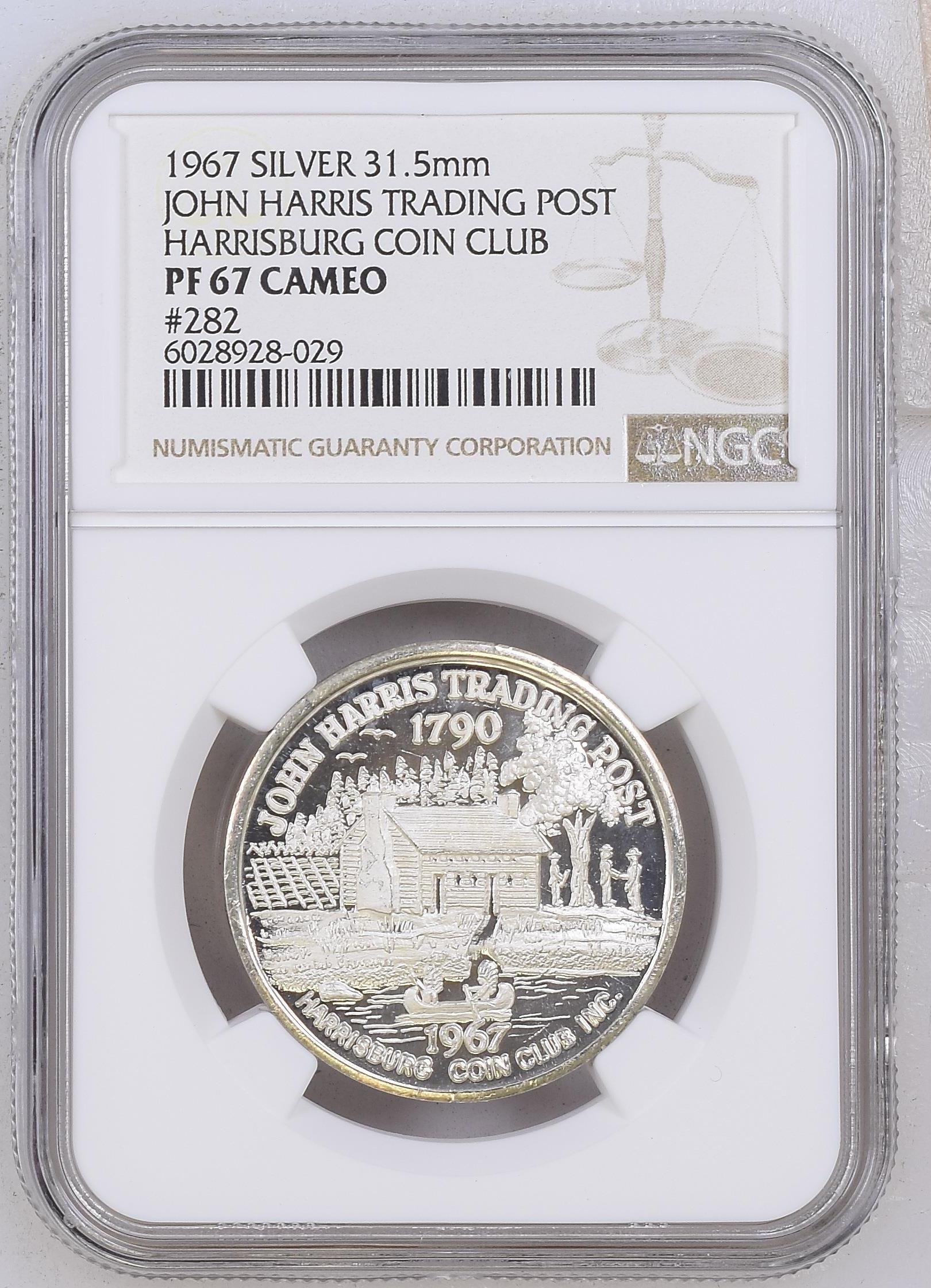 - 1967 SILVER JOHN HARRIS TRADING POST HARRISBURG, PA COIN CLUB 31.5mm