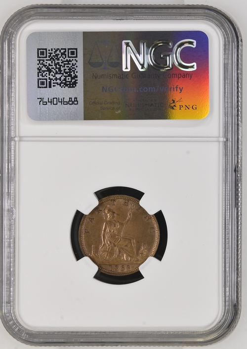 Copper Coins Notice: Coins made of copper, bronze, brass or are copper-plated can change over time. Accordingly, with regard to copper, bronze, brass or copper-plated coins graded by NGC, the grade portion will no longer apply after the 10 year anniversary of their date of encapsulation by NGC. This coin was encapsulated on 2024-03-07 and the grade guarantee will expire on 07/03/2034. If the grade guarantee has not expired, it may be extended by submitting the coin under NGC's ReGrade service tier. If the grade guarantee has expired, the coin will be treated as a raw (ungraded) submission if resubmitted to NGC.
