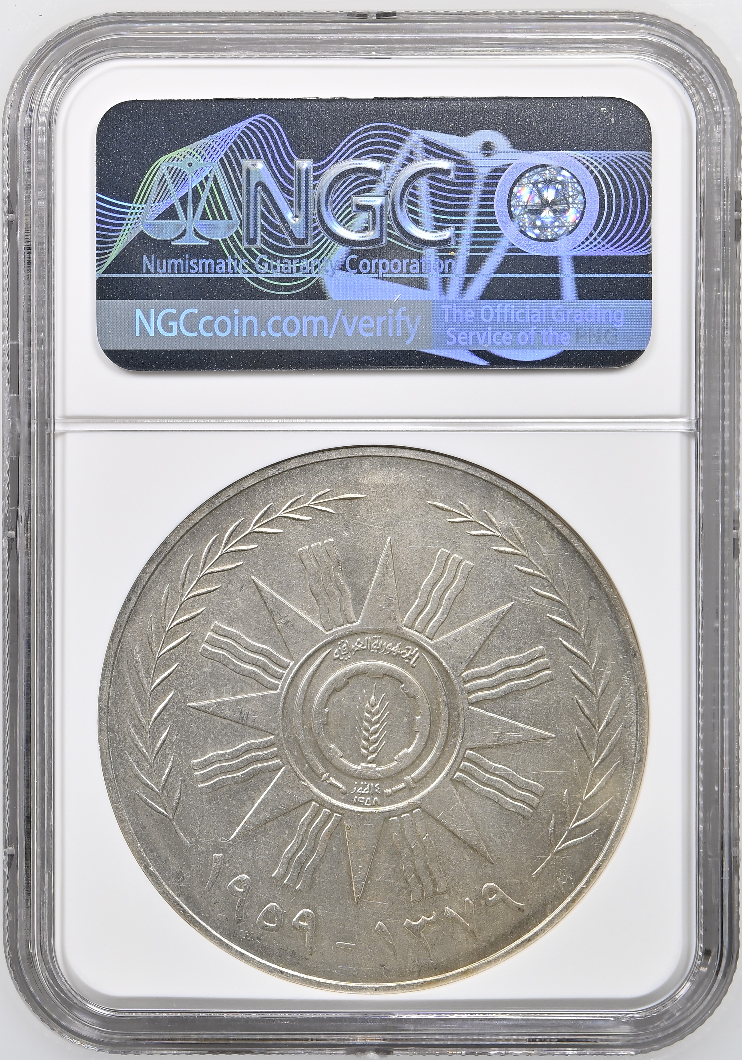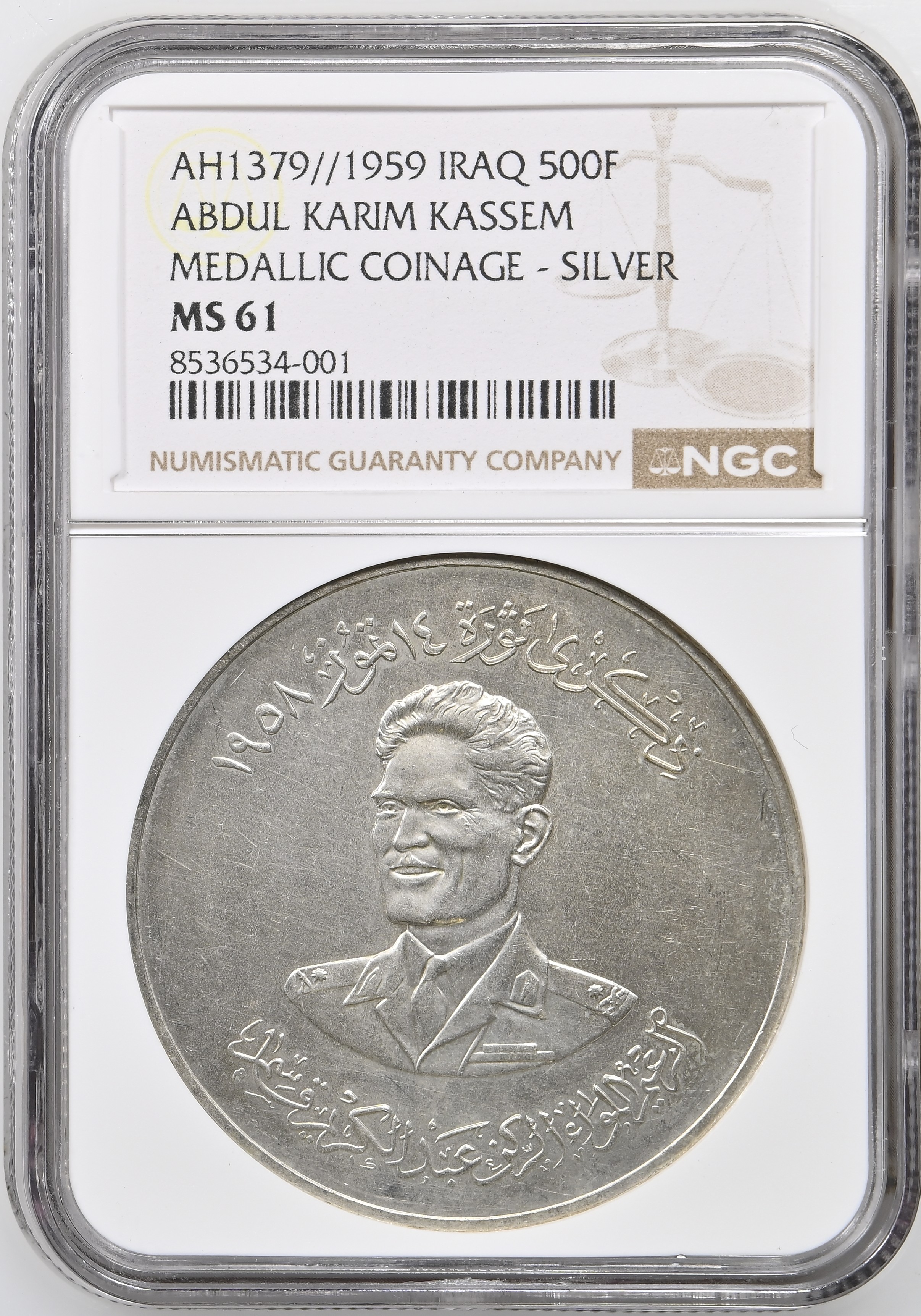 - AH1379//1959 IRAQ ABDUL KARIM KASSEM MEDALLIC COINAGE - SILVER 500F