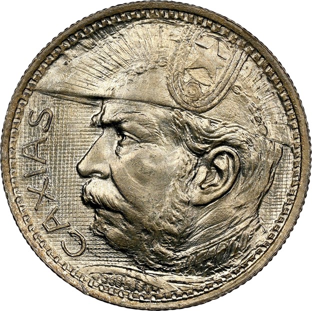 | NGC MS 64 – This lovely German coin was struck to honor the 90th birthday of Prince Regent Luitpold of Bavaria. Some 640,000 were struck, and this is a typical example. While the coin is clearly uncirculated, there is some rub on the high points, which limits this coin from Gem. This proved to be one of the easiest coins on the test, with an average score of 2.7/5.