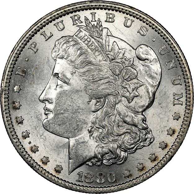 Coin #5 - USA - 1880 Morgan DollarNGC MS 61 – This coin is a textbook example of a low Mint State piece. While there is no true wear on the high points, it is very clear that this coin spent a lot of time in a bag with other coins, which has marred its surfaces. Additionally, note the heavy clash in front of Liberty’s neck, which shows that this is in fact a VAM-32A. This coin was of middling difficulty, with an average score of 1.9/5 points. |